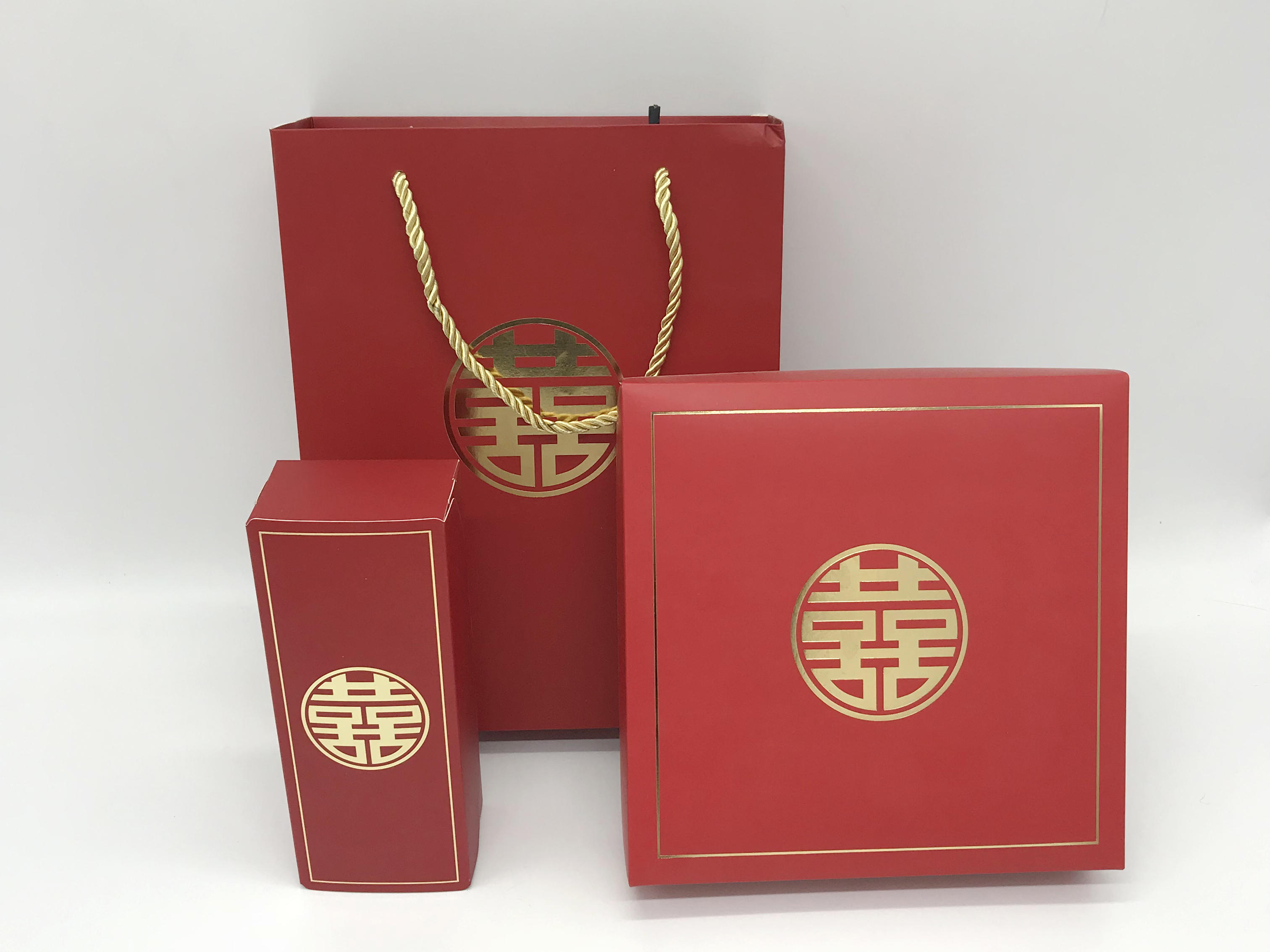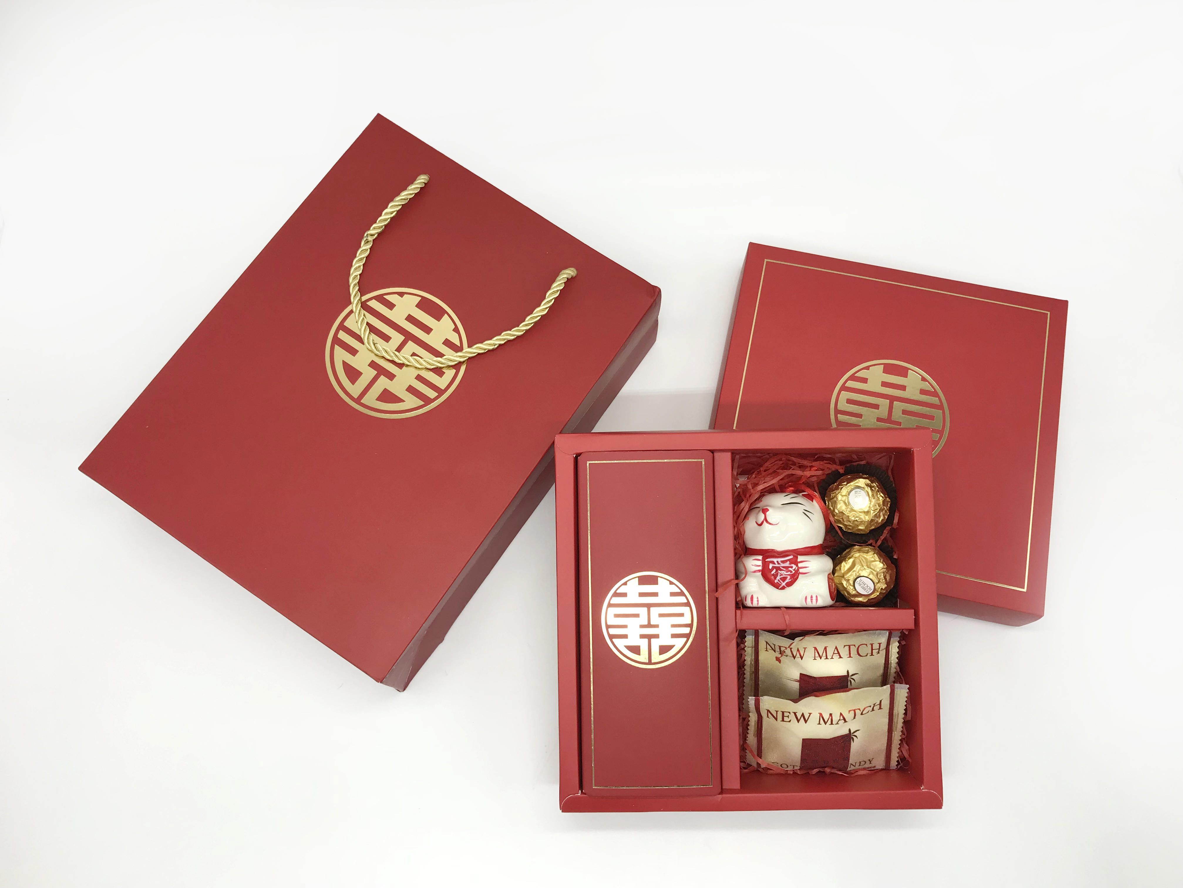 中国传统高端喜糖盒礼盒伴手礼盒套盒红色喜字套盒