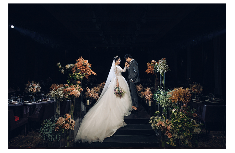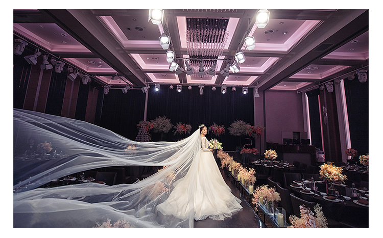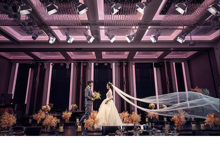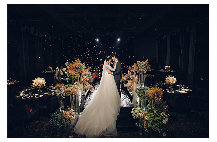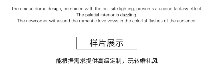 花嫁丽舍私人婚礼会所新静安店拥有五大宴会厅:层高高,全场无柱,于细节处尽显奢华精美;创意波浪纹穹顶结合匠心独运的空间运用,古典美和高科技的完美融合。