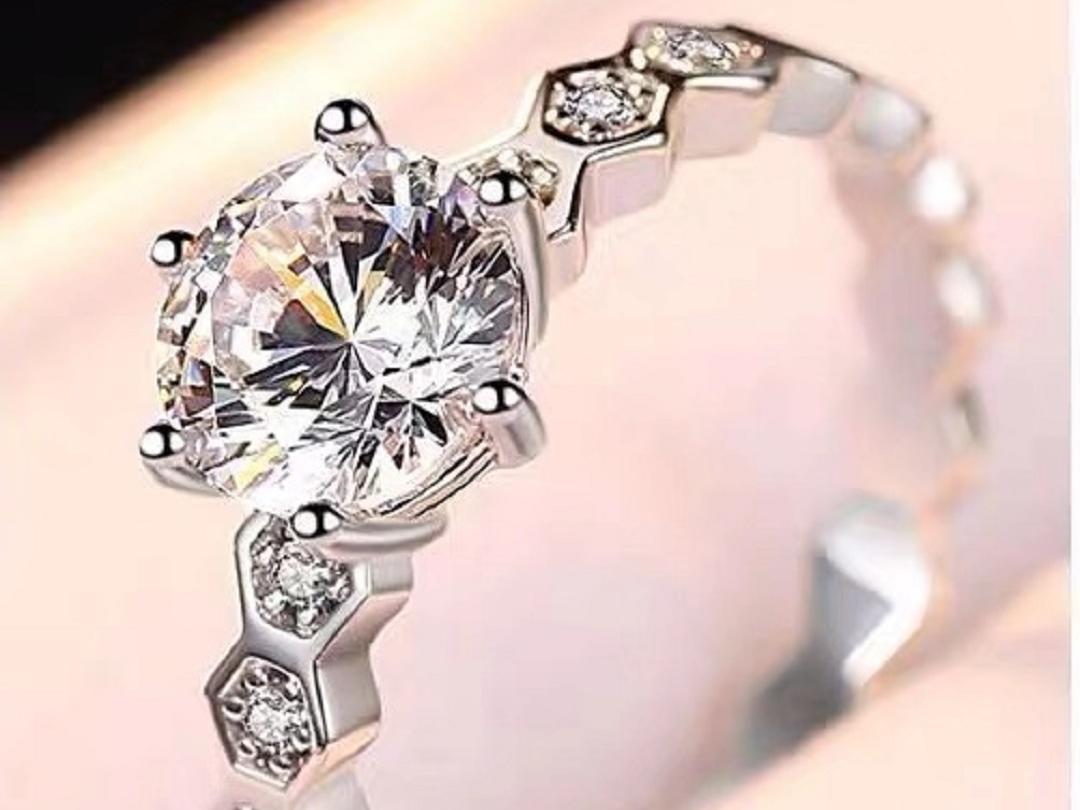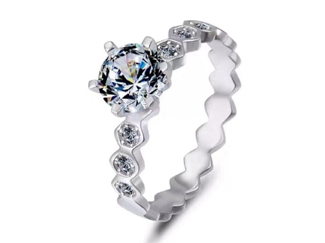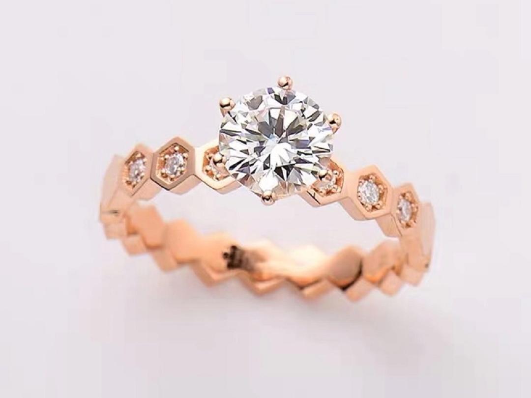 【珍安珠宝】18K金蜂巢钻戒白金玫瑰金款结婚戒指