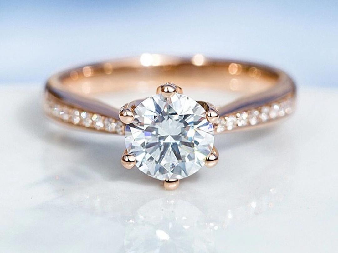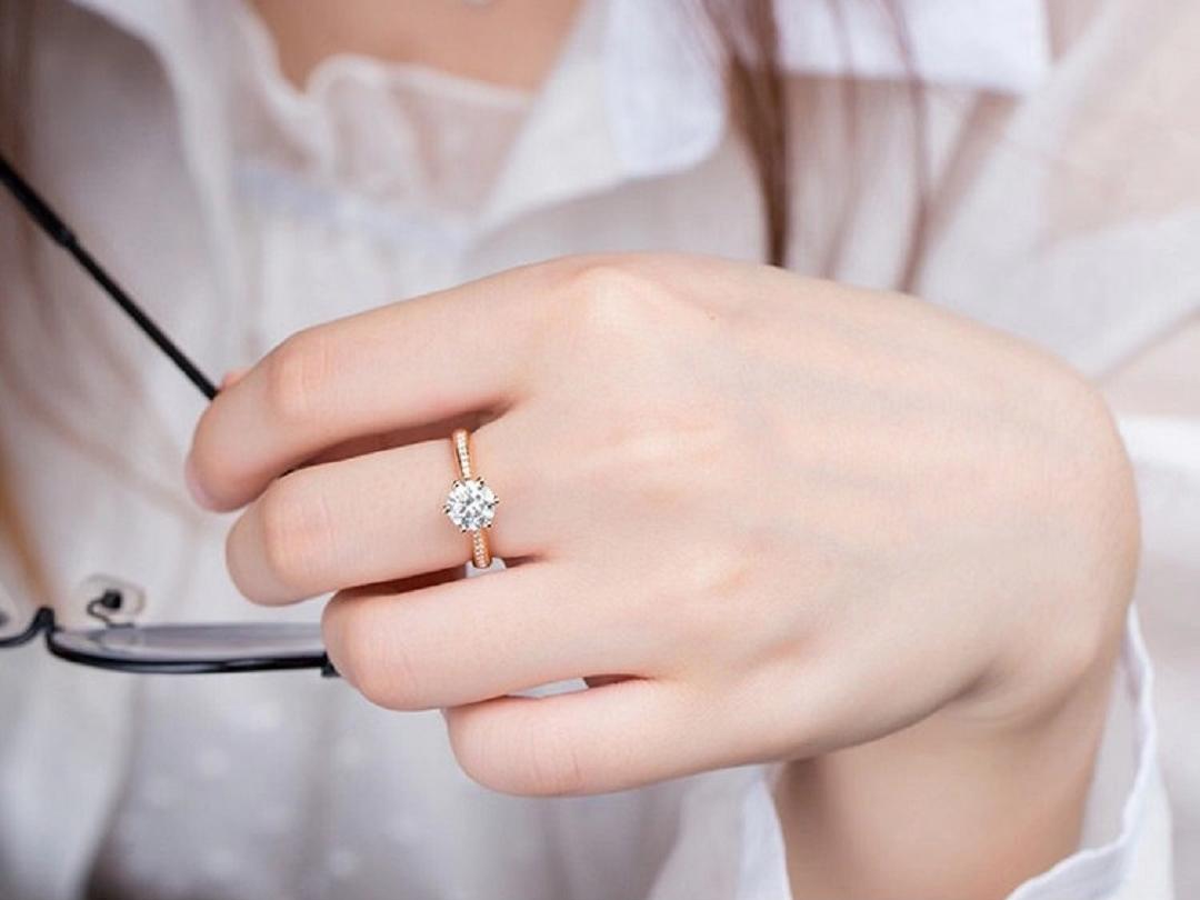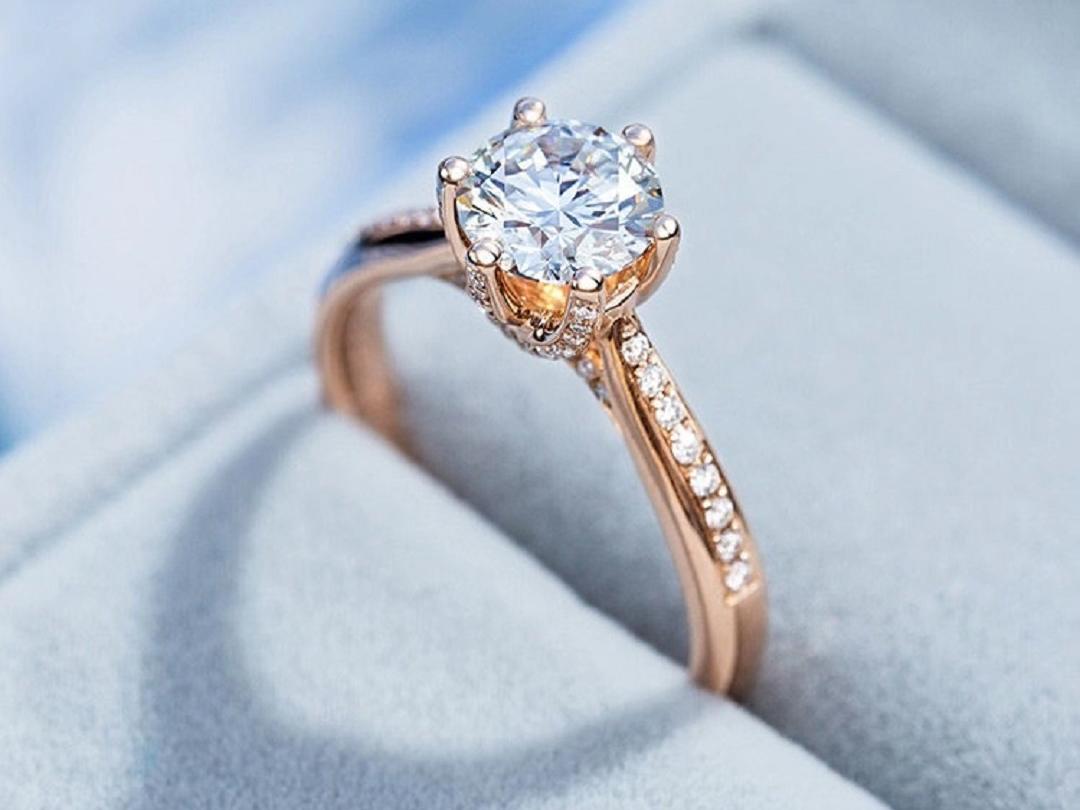 【珍安珠宝】一克拉玫瑰金GIA证书求婚订婚戒指